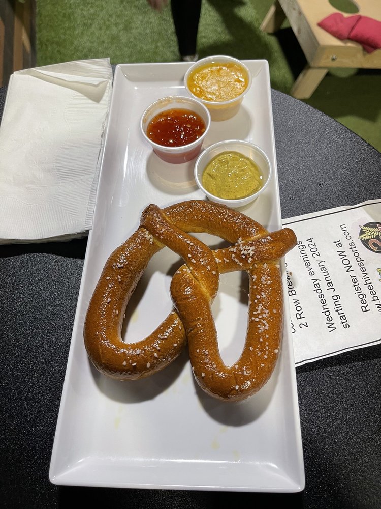 Served with 18 oz. pretzel, stone ground mustard, pub cheese dip